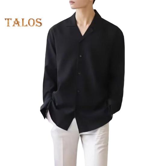 Ретро-дизайн: Эта повседневная рубашка с классическим кубинским воротником и длинными рукавами отличается непринужденным и свободным кроем, гарантируя стиль и комфорт в течение всего дня.