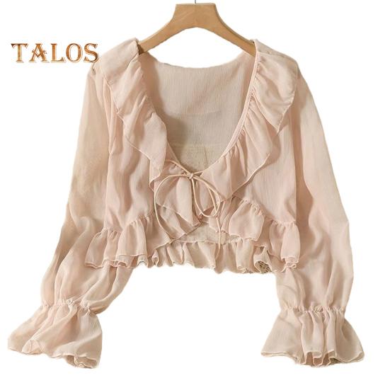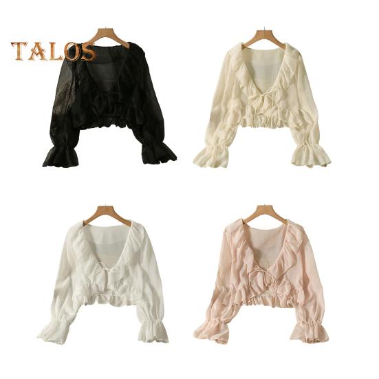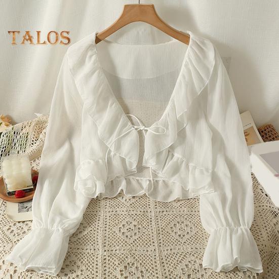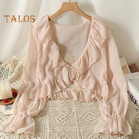 Универсальный дизайн со шнуровкой: Выделитесь уникальным дизайном кружева на этом шифоновом кардигане.. Разнообразные варианты укладки позволяют вам без труда персонализировать свой образ, делая его универсальным предметом гардероба для работы, вечеринок, свиданий или путешествий.