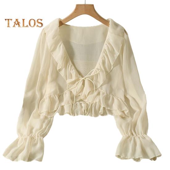 Подчеркните свой стиль с помощью этого элегантного шифонового кардигана с V-образным кружевным узором и изящной шнуровкой.. Изготовленный из высококачественной ткани из полиэфирного волокна, этот кардиган не только приятен для кожи и дышит, но также невероятно легкий и тонкий, обеспечивая комфорт в течение всего дня..