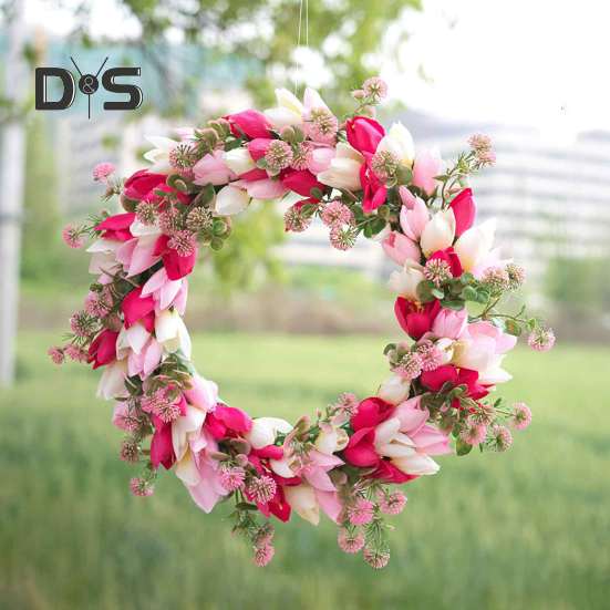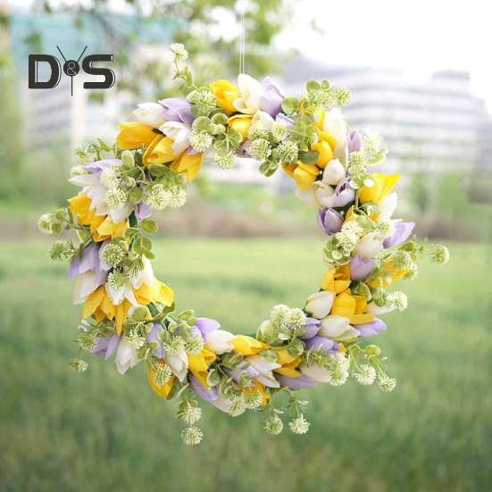 Украсьте свое пространство нашим тюльпановым венком, изготовленным из искусственного шелка.. Изысканные материалы гарантируют долговечность и привлекательную привлекательность, идеально подходящую для создания яркой атмосферы в любом помещении.
