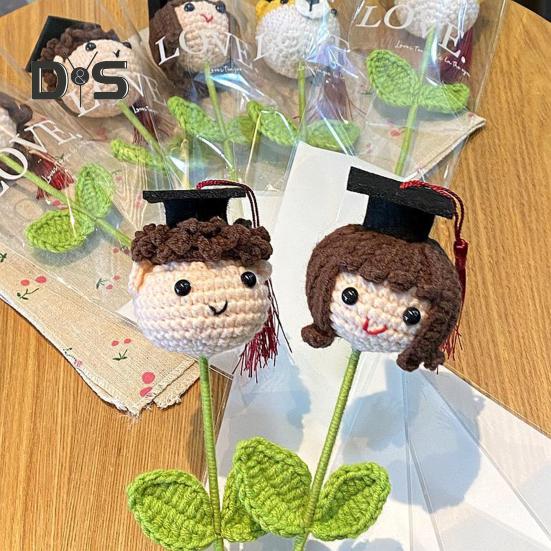 Отпразднуйте особые случаи с нашим уникальным вязаным крючком цветком! Сплетенный вручную с любовью и заботой, каждый букет посвящен теме выпускного с реалистичными деталями, такими как шапочка выпускника и листья..
