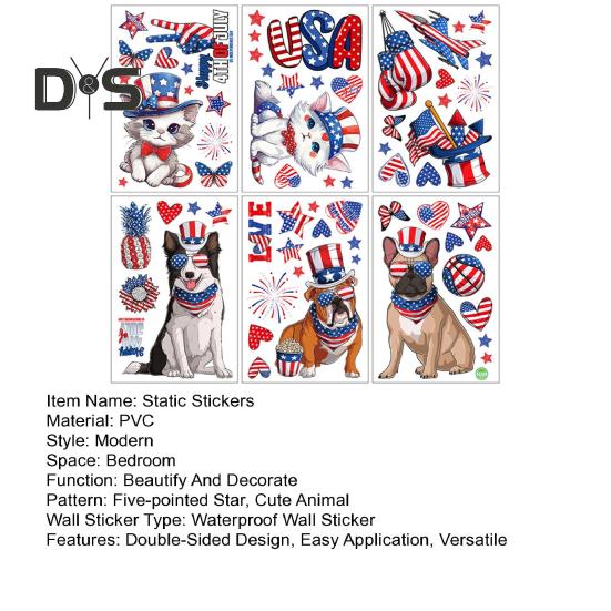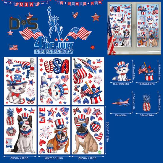 Классические элементы Дня независимости: Получите 6 многоразовых наклеек на окна размером 11,8x7,87 дюймов, украшенных культовыми красными и синими звездами, полосками, милыми животными и текстом «С 4 июля». С легкостью наполните свое окружение праздничной и патриотической атмосферой.