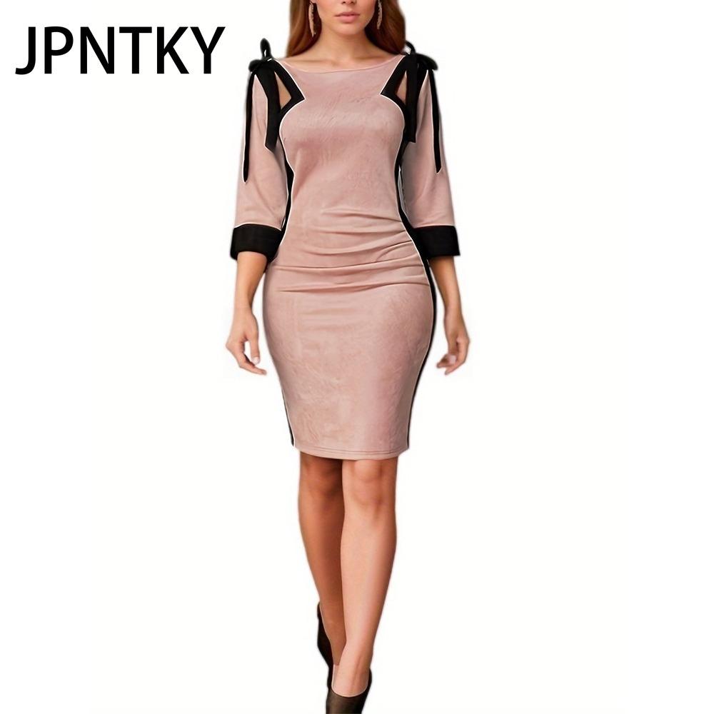 Женское осенне-зимнее платье JPNTKY с завязками на плечах и рукавами три четверти с разрезом сзади
