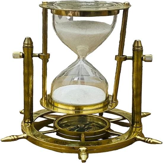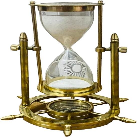 Песочные часы из латуни и стекла с основанием в виде компаса – украшение стола в винтажном стиле и функциональный подарок для дома/офиса