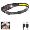 Индукционный налобный фонарь COB LED со встроенным аккумулятором, фонарик с зарядкой от USB, 5 режимов освещения, налобный фонарь