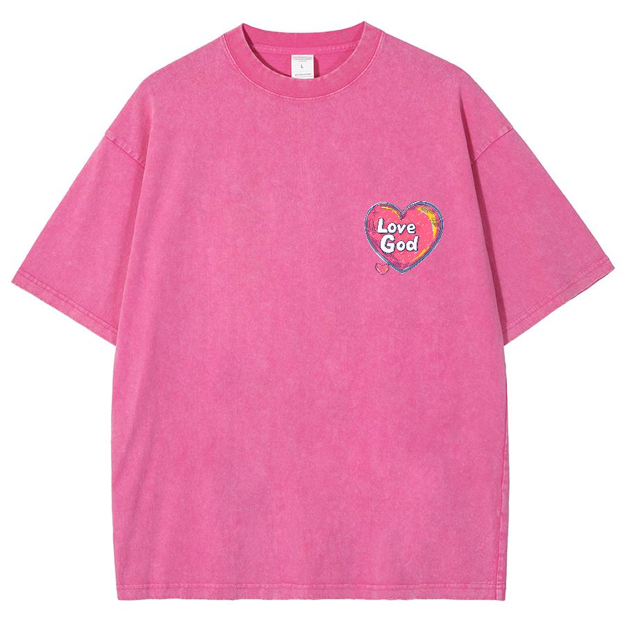 Женская футболка с принтом в виде розового сердца и букв, свободный топ из стираного хлопка с коротким рукавом в минималистском стиле унисекс