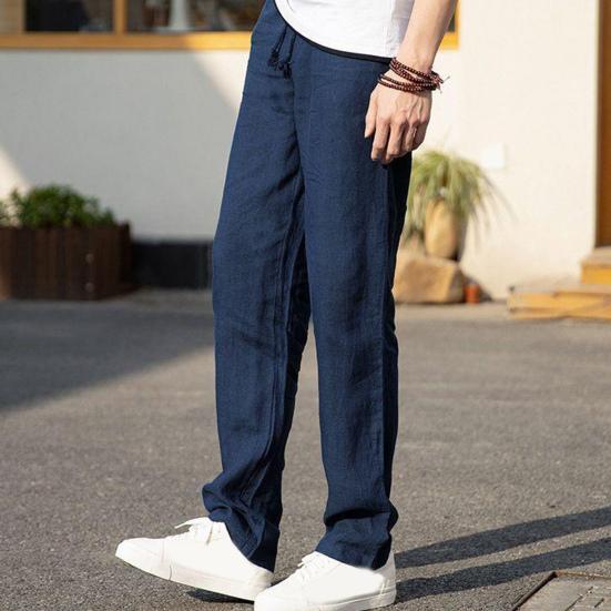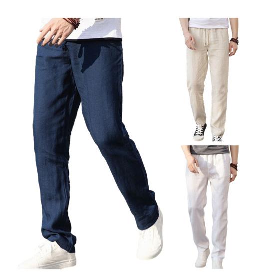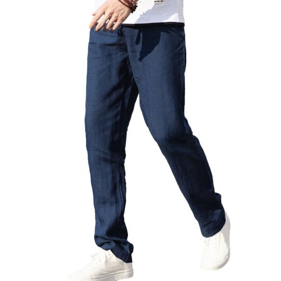 Дышащая льняная ткань: Подчеркните свой повседневный стиль с помощью этих универсальных мужских льняных брюк, которые обеспечивают комфорт и модный вид.. Эти брюки, изготовленные из дышащей льняной ткани, приятны на ощупь и идеально подходят для ношения в течение всего дня.