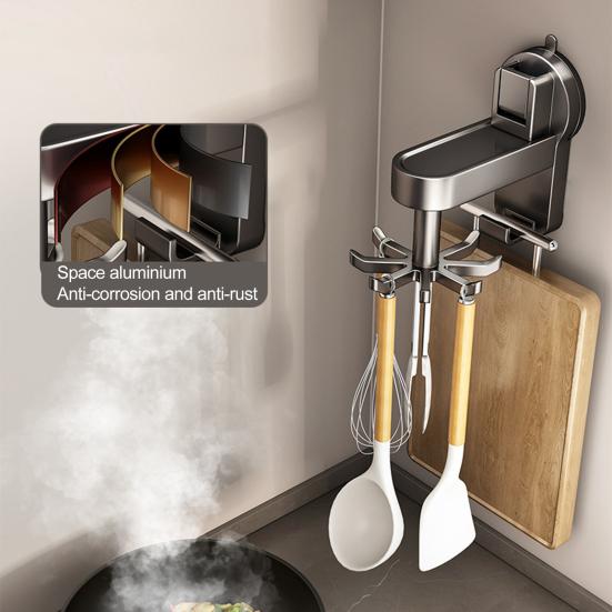 Легко находите и доставайте необходимые для готовки принадлежности благодаря функции вращения вешалки на 360 градусов. Попрощайтесь с загроможденными ящиками и шкафами, повысив эффективность и удобство приготовления пищи.
