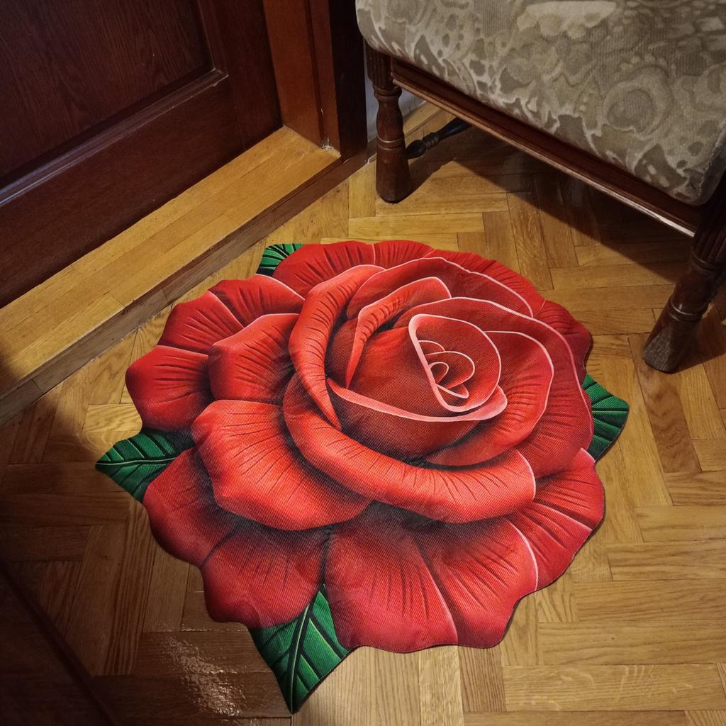 Восхитительный Коврик-Роза ❤️ Шедевр, который преображает пространство. Я просто в восторге от этого приобретения! Коврик в форме огромной, распустившейся красной розы — это не просто функциональная деталь, это настоящий арт-объект, который мгновенно приковывает взгляд и наполняет комнату атмосферой роскоши и уюта. Главное достоинство - это, безусловно, его форма. Лепестки детально и реалистично проработаны. Насыщенный, глубокий оттенок красного с теневыми переходами выглядит невероятно живо и объемно, создавая эффект 3D. Зеленые листья в основании добавляют контраста и завершенности композиции. Поверхность выполнена из очень мягкого, бархатистого материала, который невероятно приятен на ощупь. Ступать на него - одно удовольствие, ощущаешь нежность и тепло под ногами. Обратная сторона коврика оснащена специальным антискользящим покрытием — множеством мелких, точечных резиновых вкраплений. Такой коврик не будет скользить даже на гладком ламинате, паркете или плитке, что делает его безопасным. С удовольствием рекомендую 👍 Удачных покупок ❤️ Ваша Вика 😊