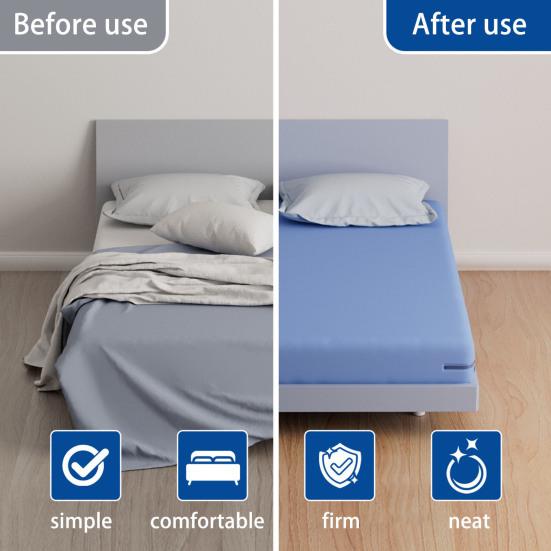 Заправка кровати без усилий: Обновите комплект постельного белья без особых усилий с помощью наших надежных держателей для простыней. Держите простыни туго натянутыми и надежно закрепленными, что упрощает процесс заправки кровати и делает его более быстрым и эффективным.