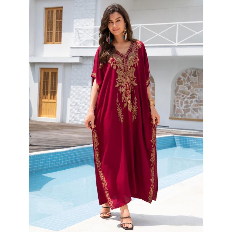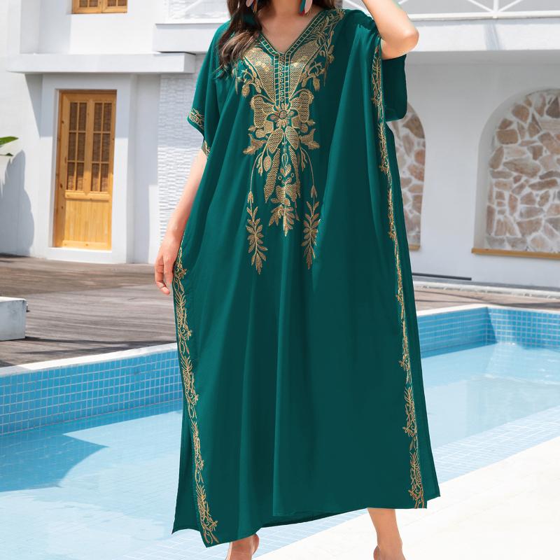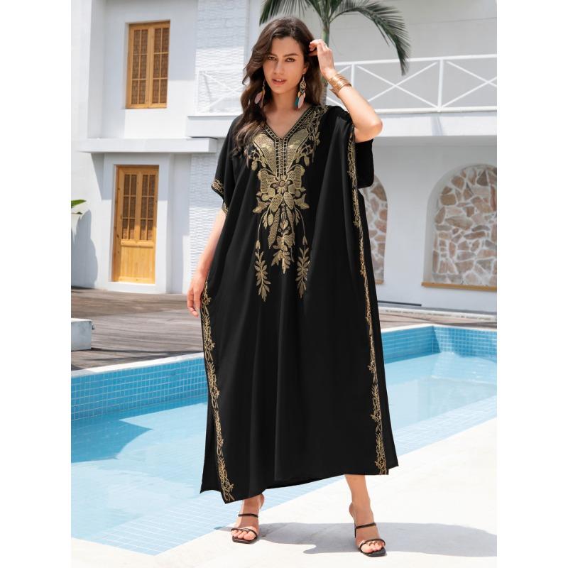 Женская мода лето весна цветочный узор принт рукава 1/2 V-образный вырез свободная талия повседневные платья