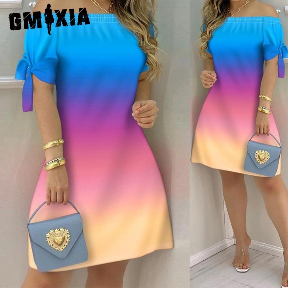 GMXIA Женское модное платье с открытыми плечами, с короткими рукавами, с принтом в виде бантика, летние пляжные платья больших размеров — купить товар онлайн с бесплатной доставкой по всему миру!