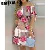 GMXIA Женское модное платье с открытыми плечами, короткие рукава, принт с бантом, летние пляжные платья больших размеров