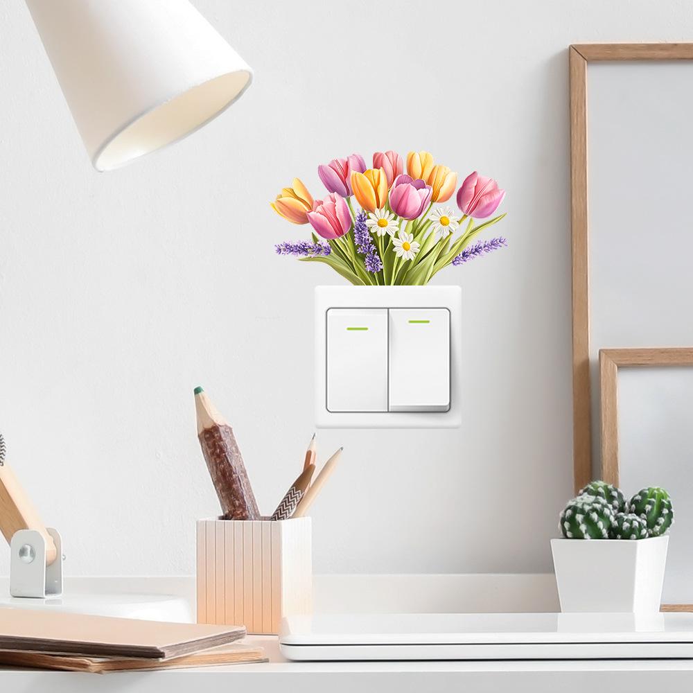 Акварельный цветок тюльпана Спальня Гостиная Выключатель Дом Фон Украшение Наклейка на стену
