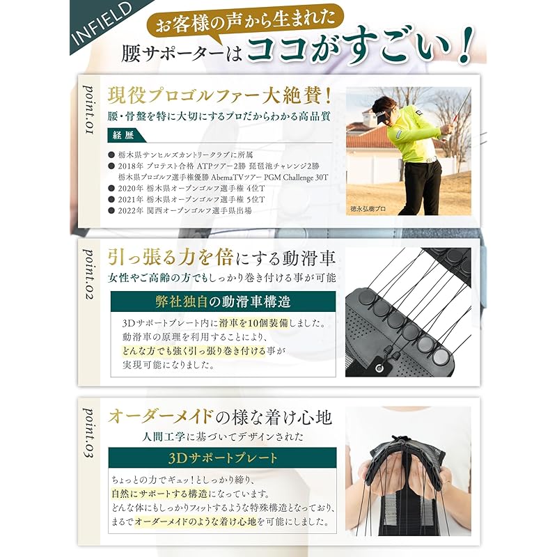 [Highly praised by professional golfers] INFIELD belts are used by professional golfers and osteopathic clinics! We have received compliments from professionals who take care of their bodies on a daily basis.