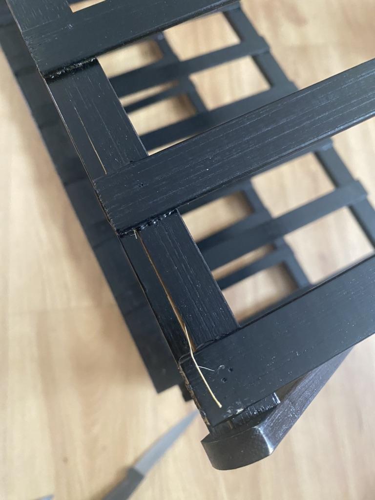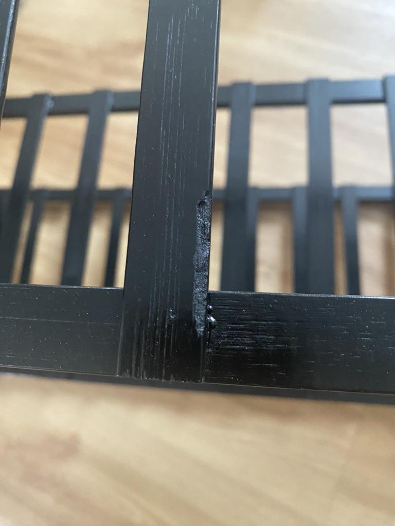 Одна из планок с трещиной. И, такое впечатление, что дефект возник не при транспортировке, потому что поломка внутри плотно сложенной полочки. Пока стоит, смотрится хорошо.