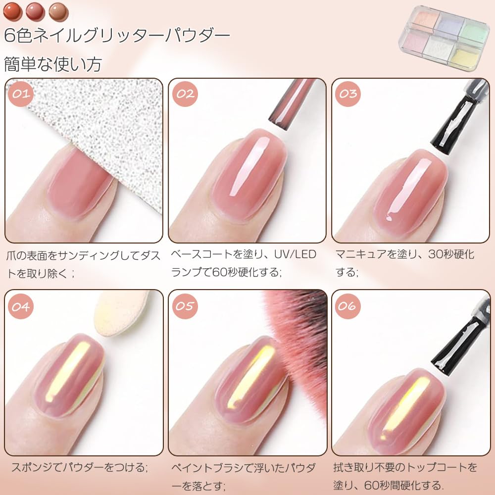 Пудра Aurora Mirror Powder 6 цветов Пудра для ногтей Блеск для ногтей Гель-лак для ногтей Зеркальная пудра для ногтей Aurora Глиттер для ногтей Неоновая пудра Aurora