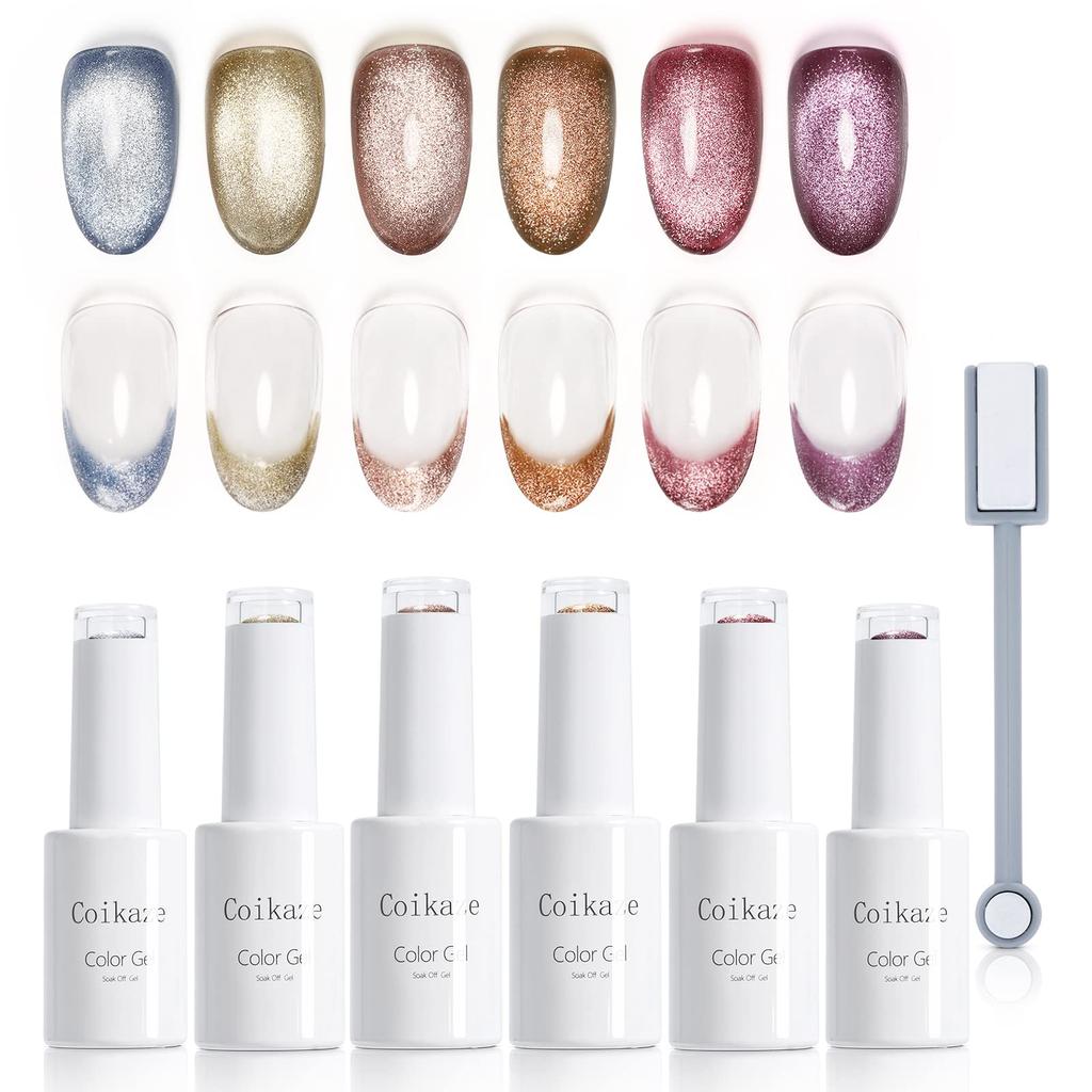 Gel Nail Magnet Gel Coikaze Eye Gel 6 Color Set Galaxy Color Gel Eye Eye Compatible Cat's Cat's Cat's UV/LED (Magnet Gel-02)