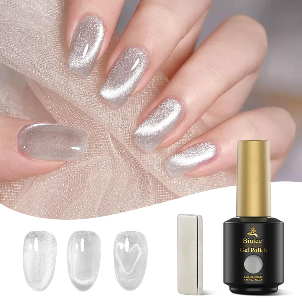 Biutee Magnetic Nail Gel Nail Color Gel Cat Eye Cat Eye Effect 8ML with Magnet Cat Eye Gel Fine Particle Glitter Diamond Gel with Magnet Dazzling