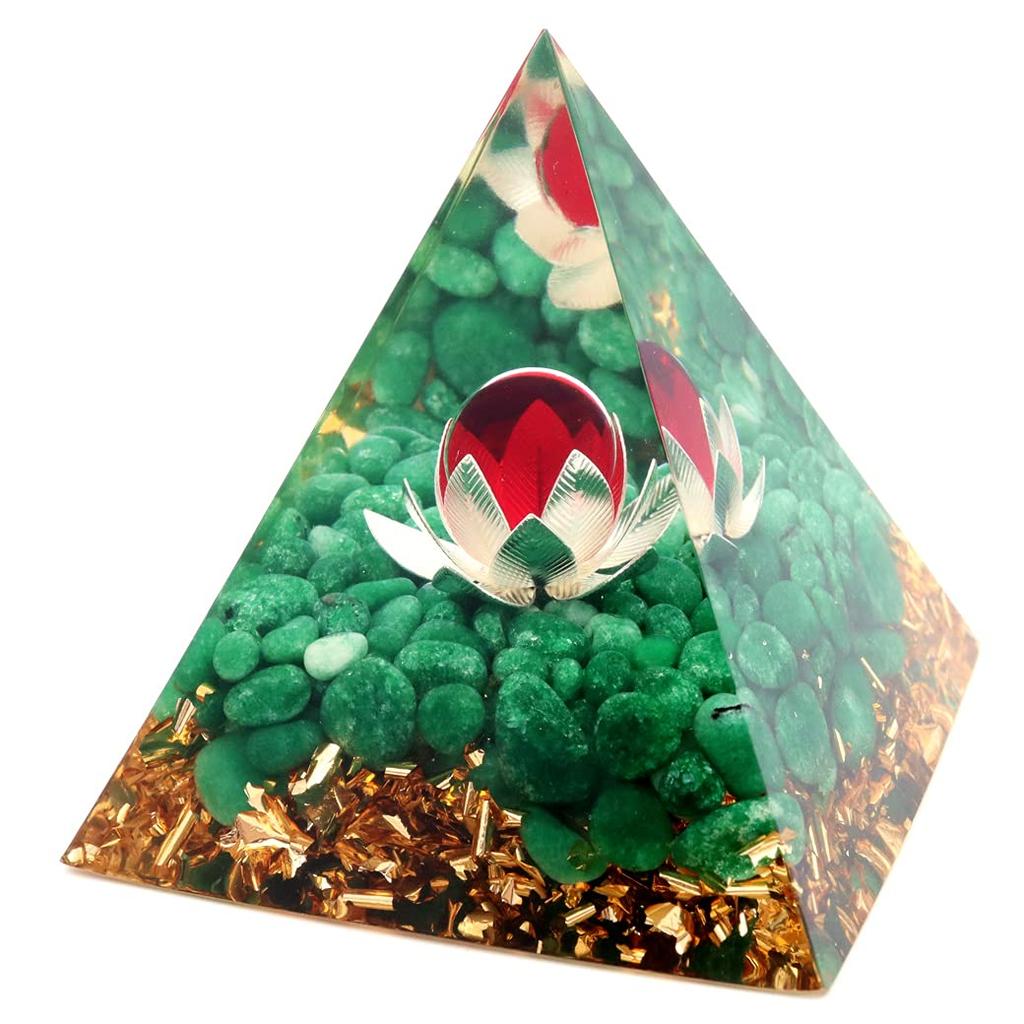 Оргонитовая пирамида украшение натуральный камень камень силы очищение цветок лотоса [ЗОЛОТОЙ КАМЕНЬ]