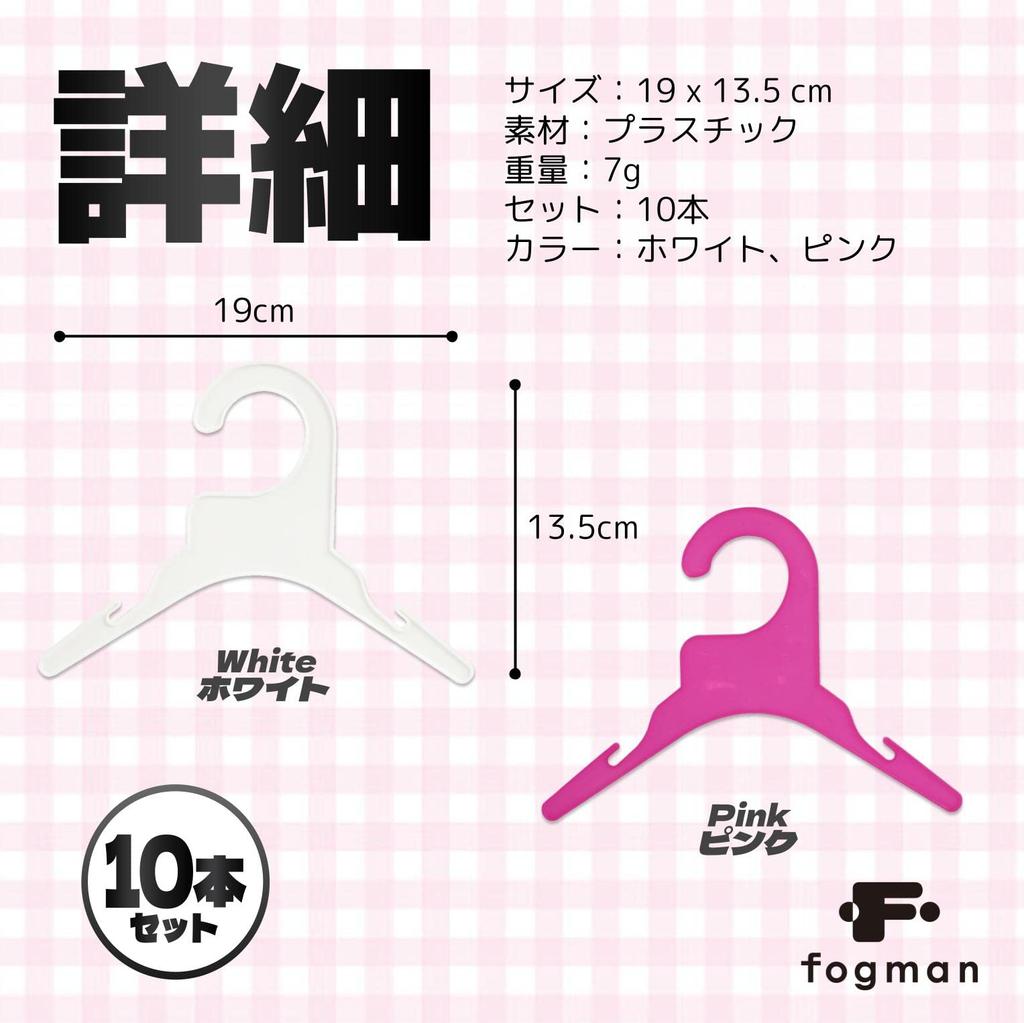 fogman Pet Hanger for Dogs and Cats Plastic Clothes Set of 10 Clothes, Storage, Lightweight, (White)