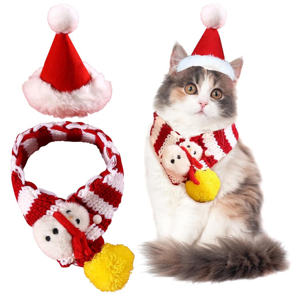 【Широко используется】Этот шарф и шапка имеют милый, красивый и стильный дизайн, подходят для многих случаев.. Доступный в двух стилях, это практичный и красивый подарок для собак, кошек, кроликов и других домашних животных, идеально подходящий для дней рождения, Рождества, вечеринок и т. д.