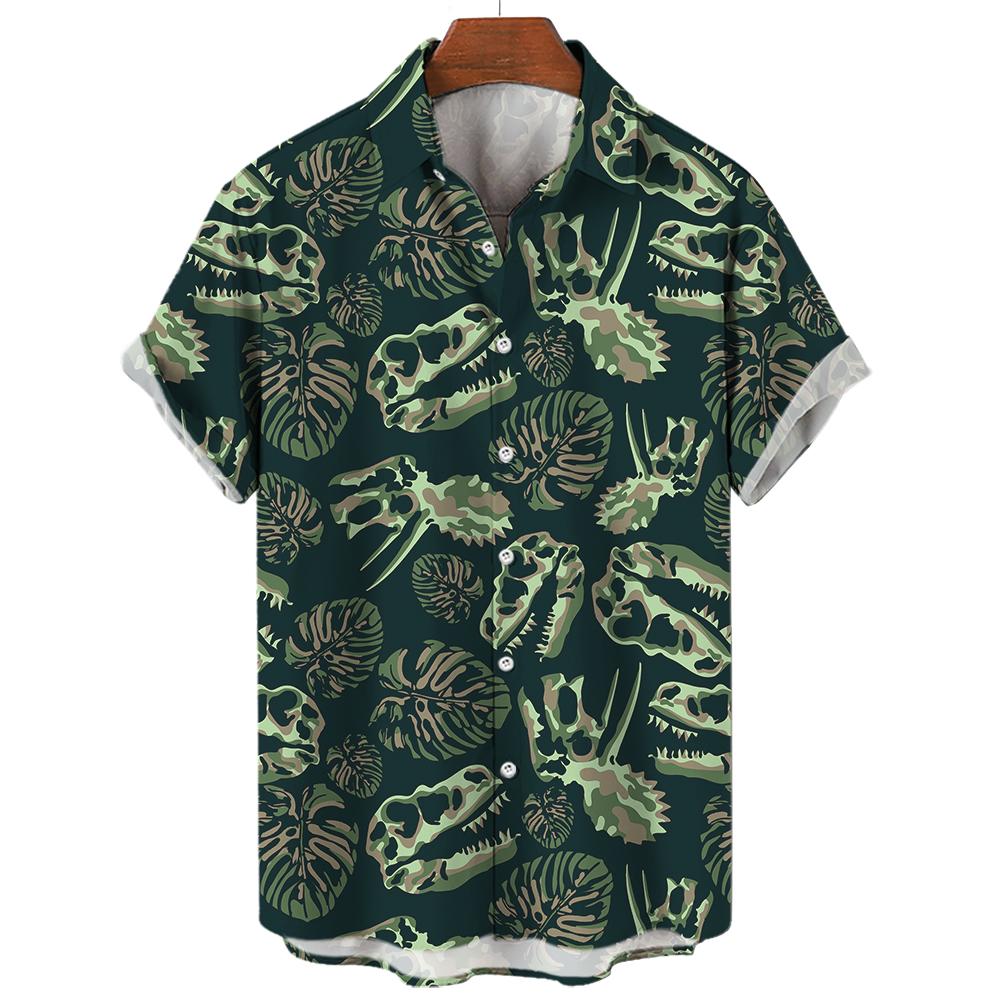 Мужские гавайские рубашки с 3D-принтом, графикой динозавра, модные пуговицы, короткий рукав, лацкан, уличная одежда, гавайские рубашки для мужчин, лето