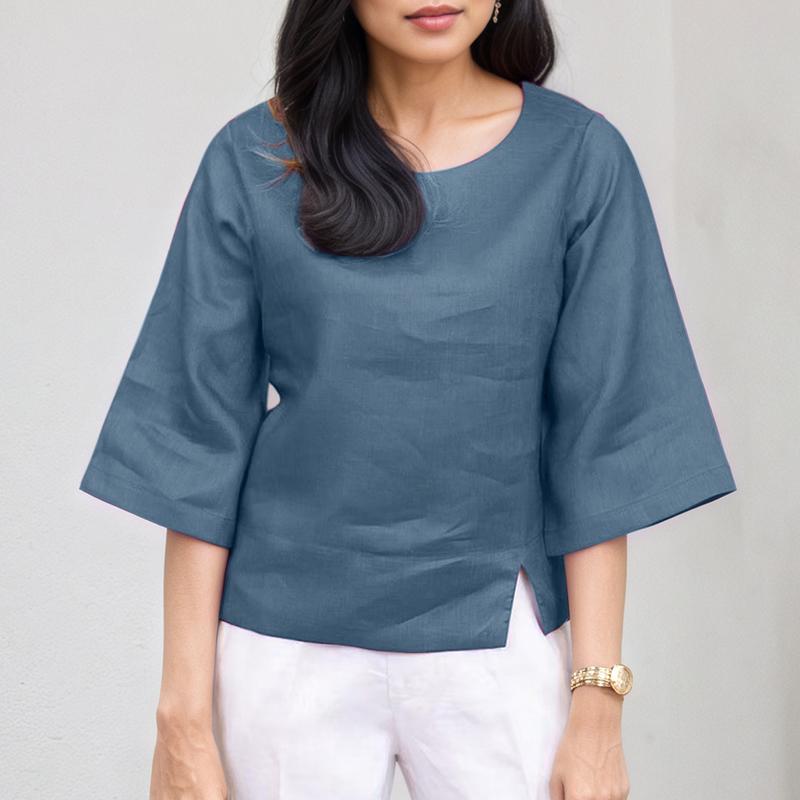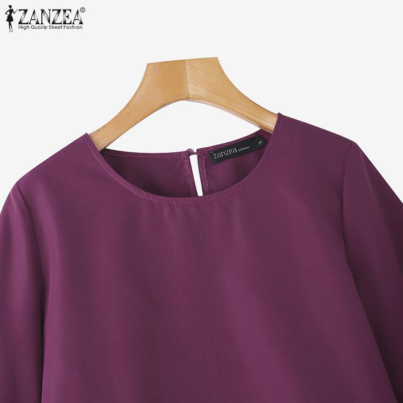 ZANZEA Женская повседневная летняя однотонная блузка с круглым вырезом и рукавом 3/4