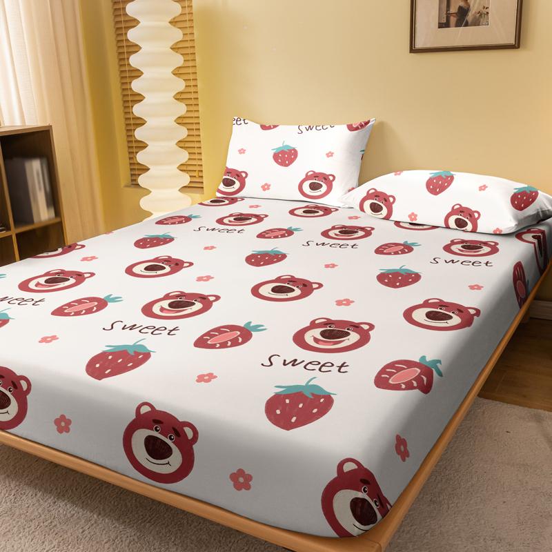 1 Мультяшный Милый Узор Клубничного Мишки Цифровая Печать Матовый Простынь на Резинке, Принт для Спальни Покрывало на Кровать, Постельное белье(Нет наволочки)