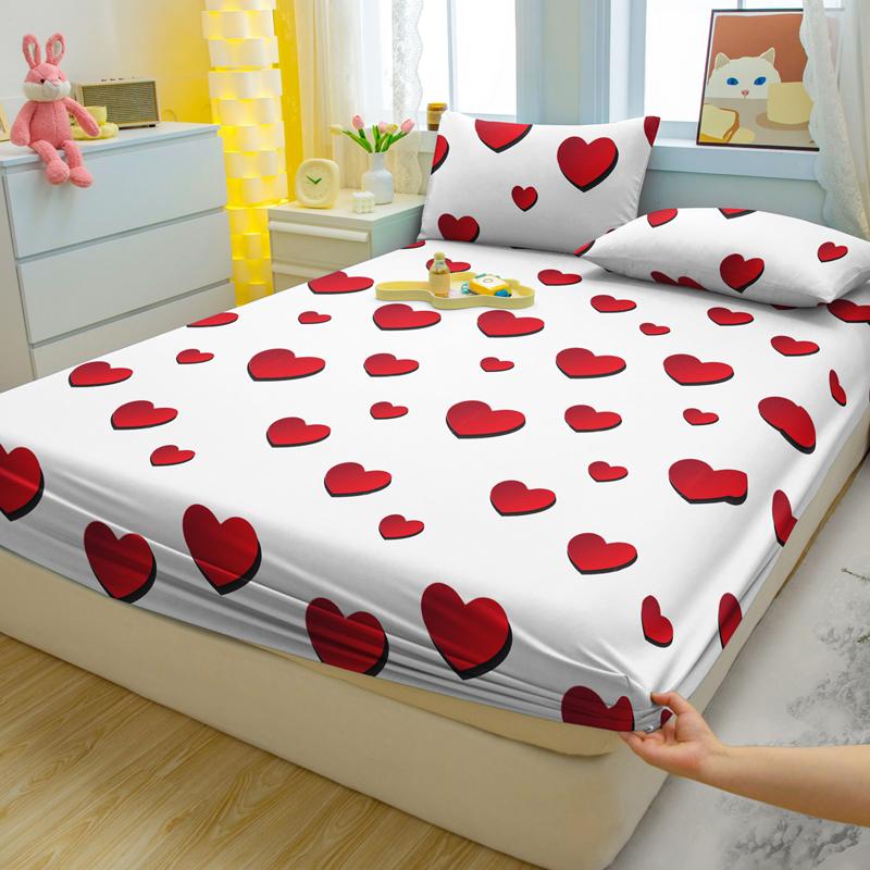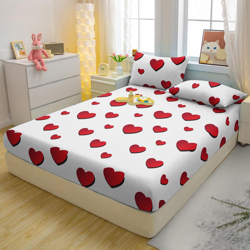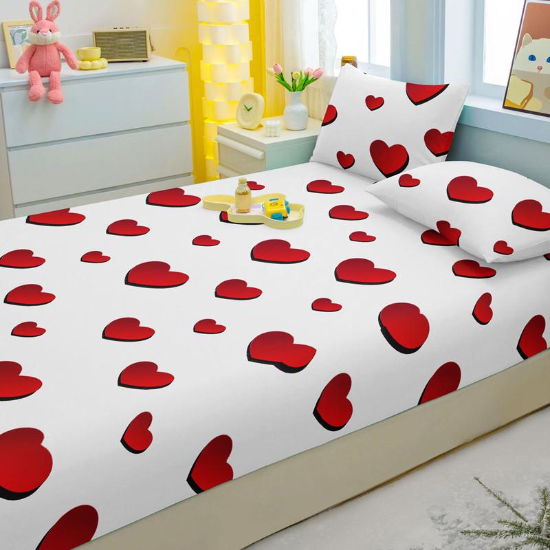 1 простая современная матовая простыня на резинке с принтом в форме сердца, покрывало для спальни с принтом, постельное белье (Исключая наволочки)
