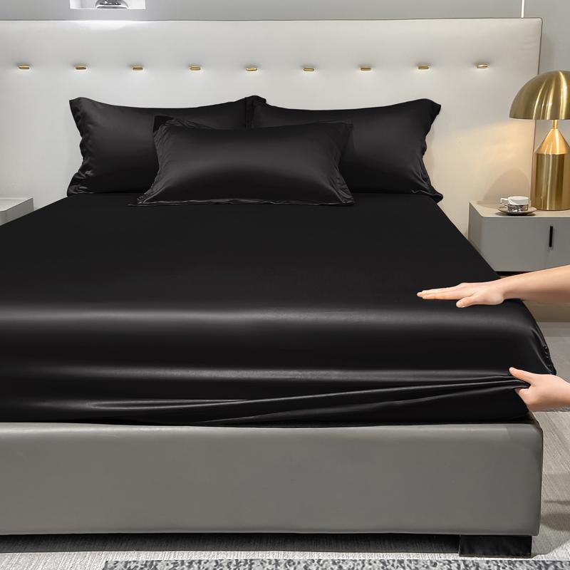 Четыре сезона Мужчины и женщины Простая мода Черный сатин Однотонный Покрывало из ледяного шелка Дом Спальня Отель