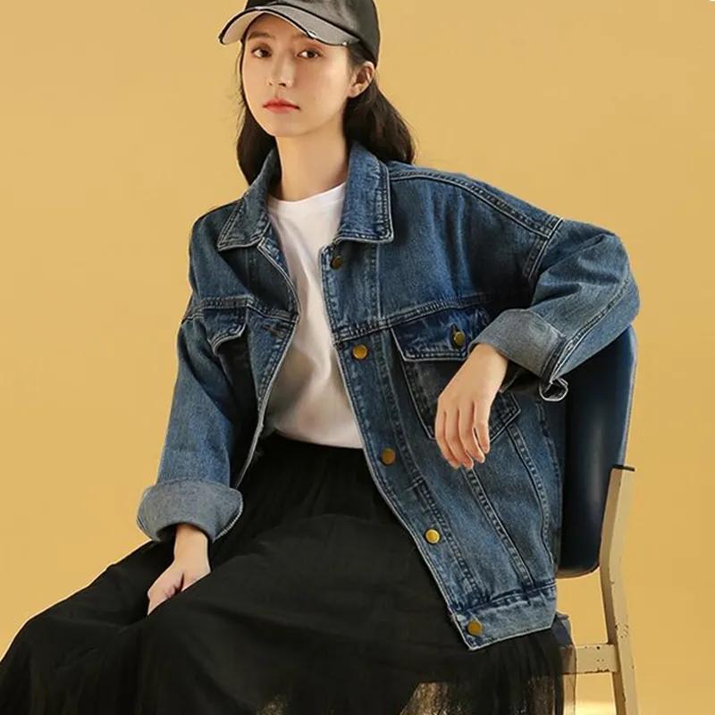 Джинсовая куртка больших размеров для женщин в корейском стиле, универсальная джинсовая куртка на весну и осень, свободный деним — купить товар онлайн с бесплатной доставкой до всему миру!