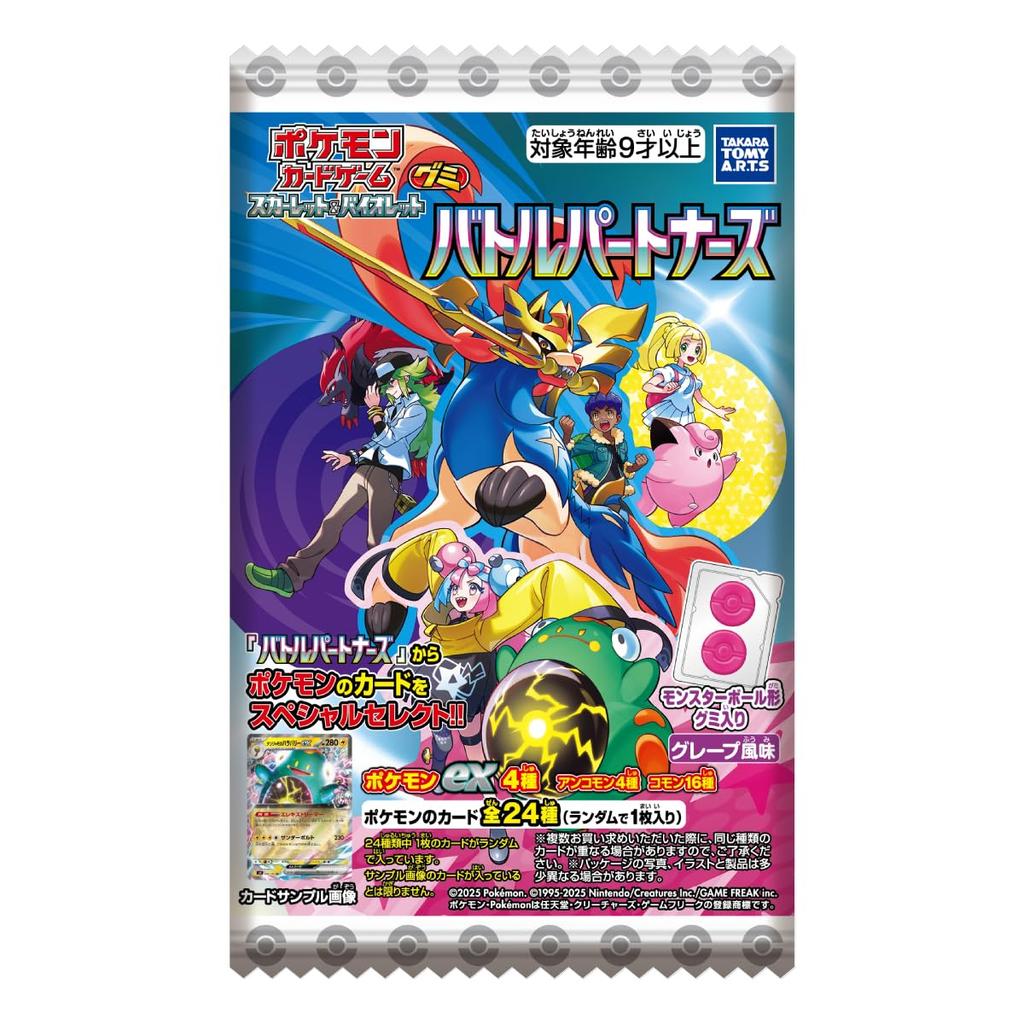 Представляем новую жевательную резинку с одной официальной картой, специально выбранной из последнего дополнения «Battle Partners» карточной игры Pokemon Scarlet & Violet.