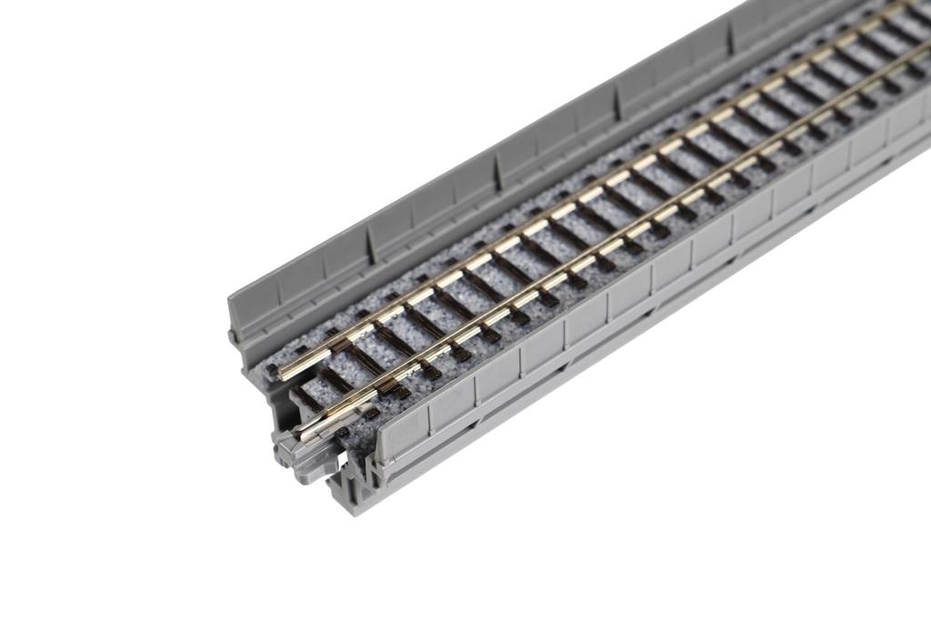 Прямой приподнятый путь с ограждениями по обеим сторонам одноколейного пути. Длина составляет 248 мм, что соответствует базовой прямой линии.