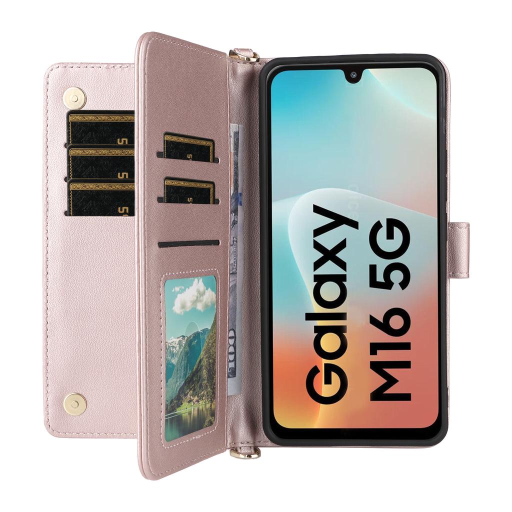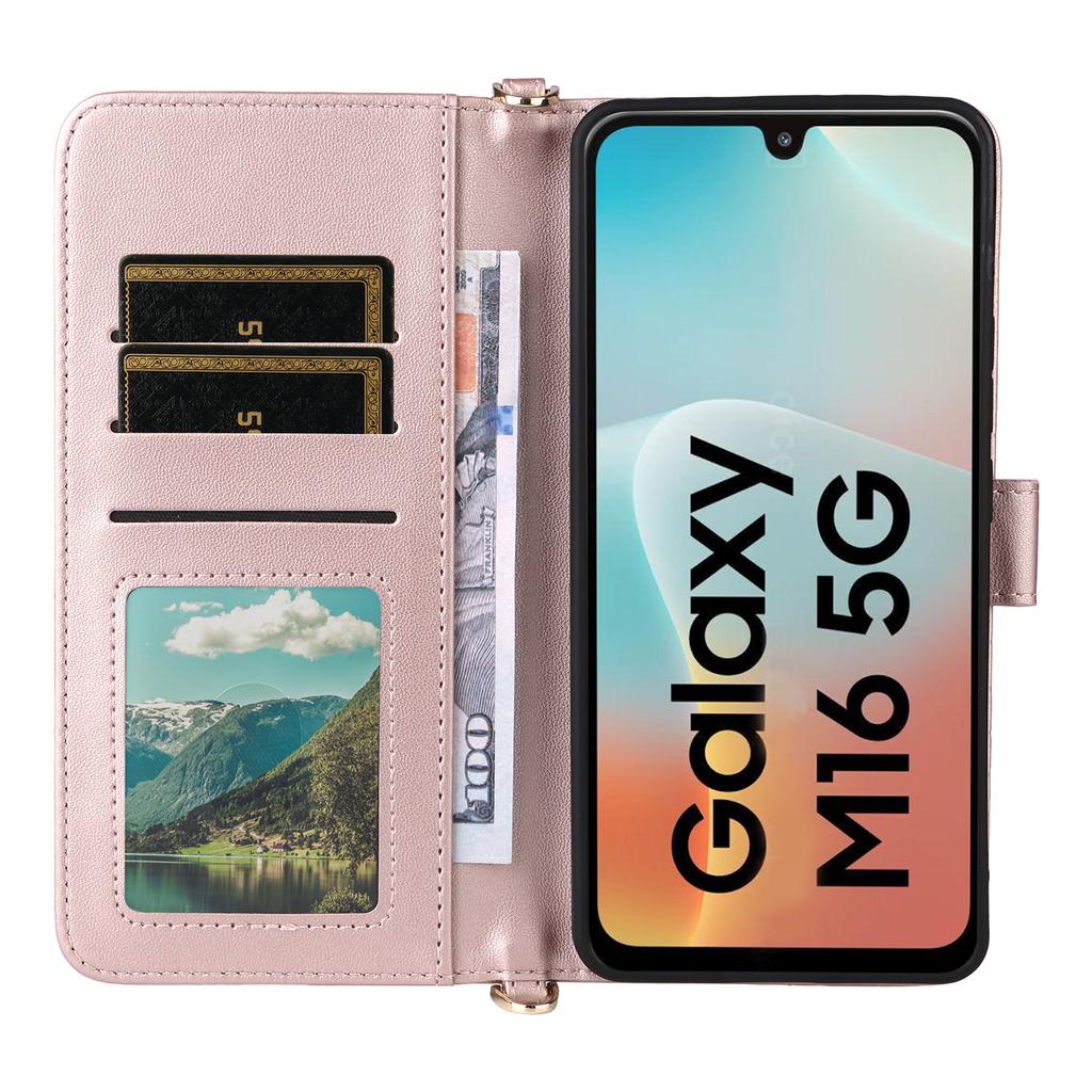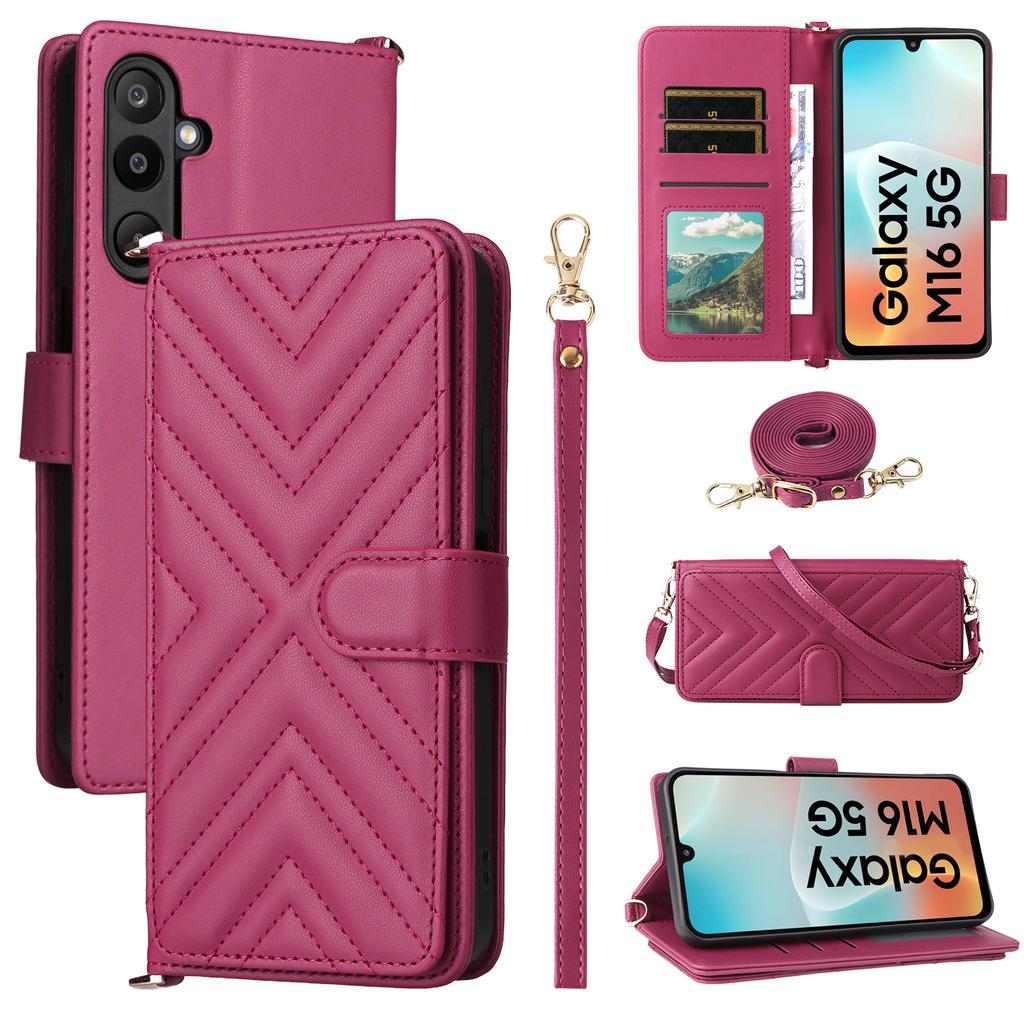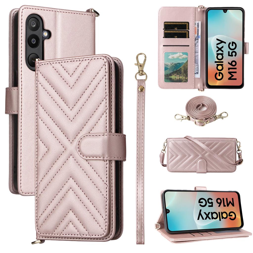 For Samsung Galaxy M16 5G/F16 5G Wallet Case with Shoulder/Wrist Strap Leather Phone Cover Stand