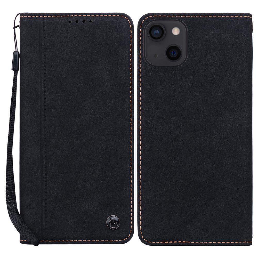 For iPhone 15 Case Lines Pattern Wallet Leather Phone Cover with Strap