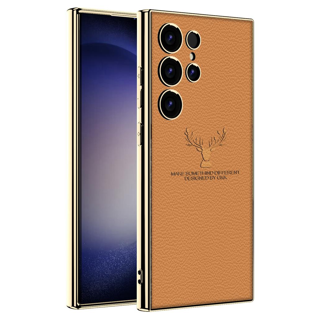 For Samsung Galaxy S23 Ultra Case Deer Pattern Electroplating TPU+PC+PU Phone Back Cover