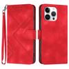For iPhone 16 Pro Max Wallet Case Line Imprinted PU Leather Phone Cover with Strap — купить товар онлайн с бесплатной доставкой до всему миру!