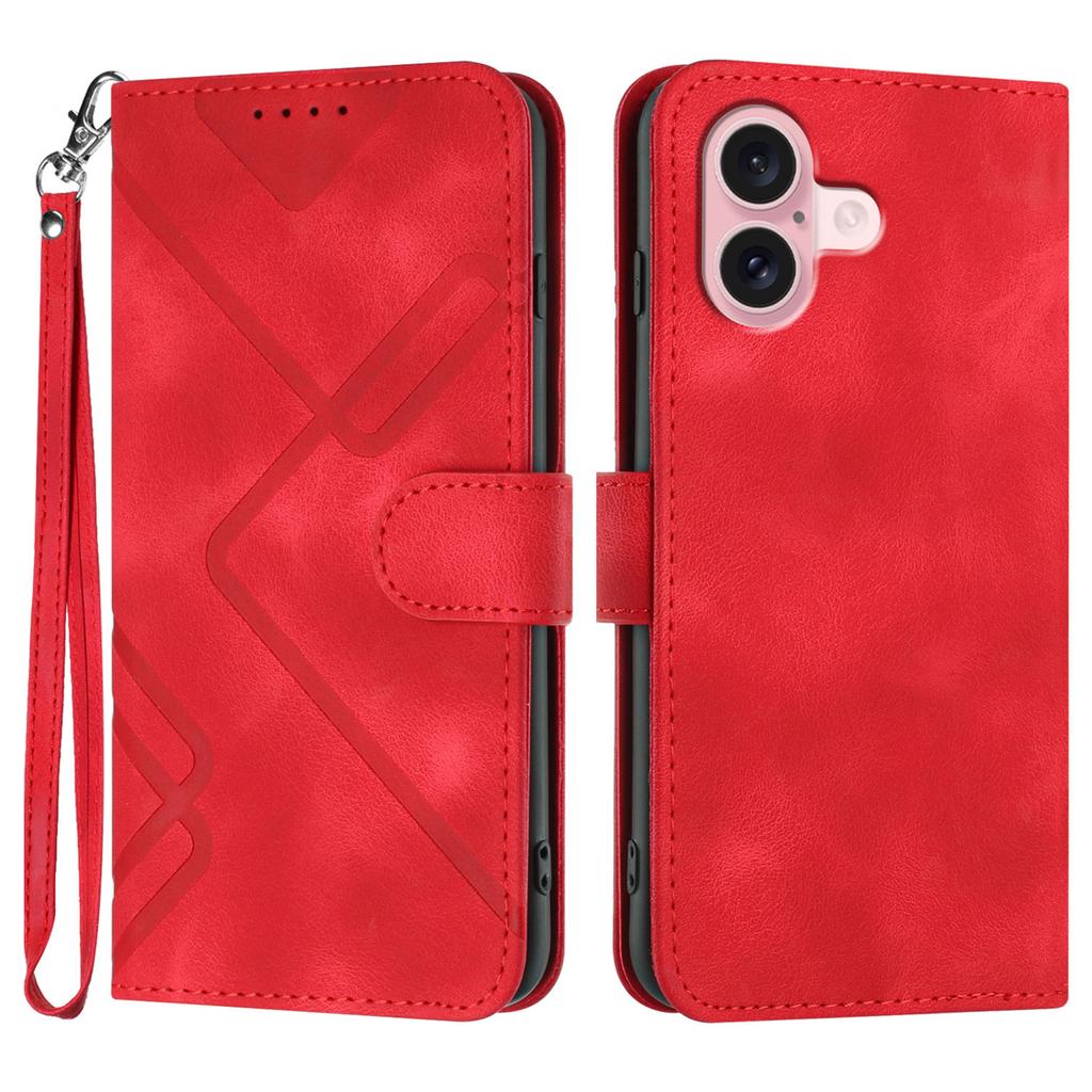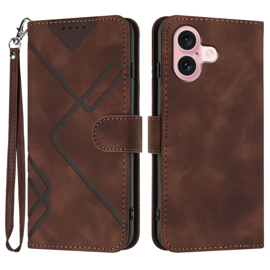 Чехол-кошелек для iPhone 16 из ПУ-кожи с тиснением линий и ремешком
