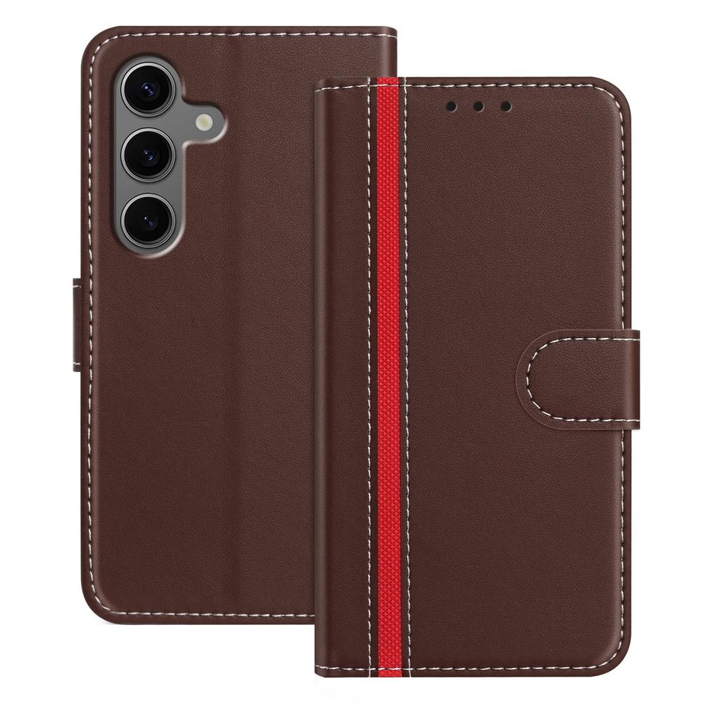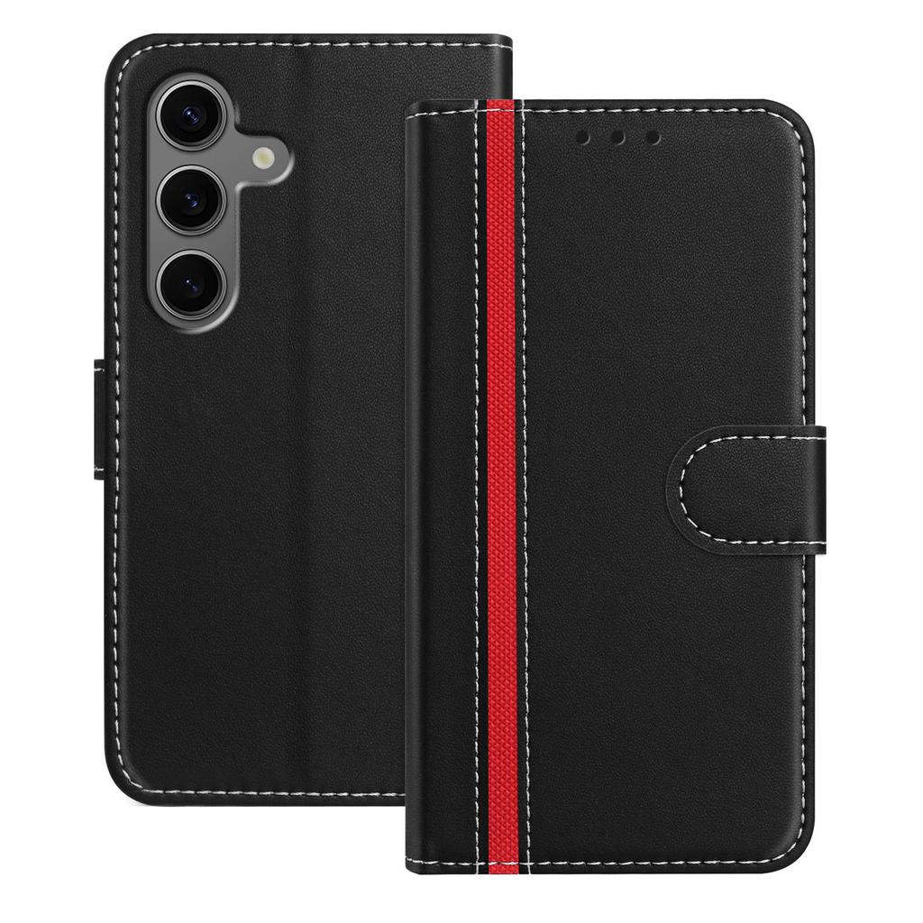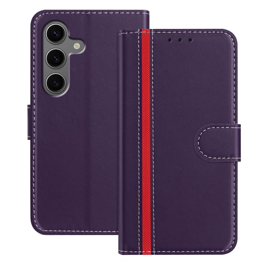For Samsung Galaxy S25+ Phone Cases Wallet Stand Color Splicing Leather Cover with Magnetic Clasp