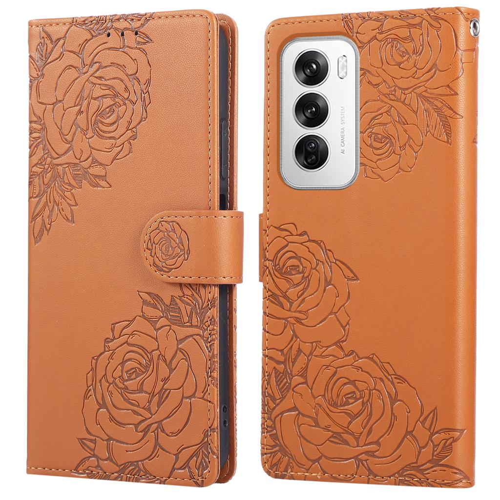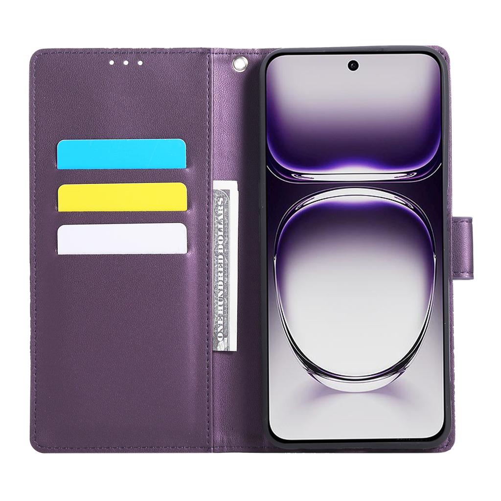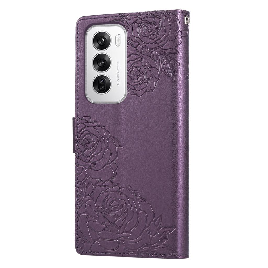 Для Oppo Reno12 5G (Глобальный) Чехол Кошелек из ПУ кожи с розовым цветком и 3 отделениями для карт