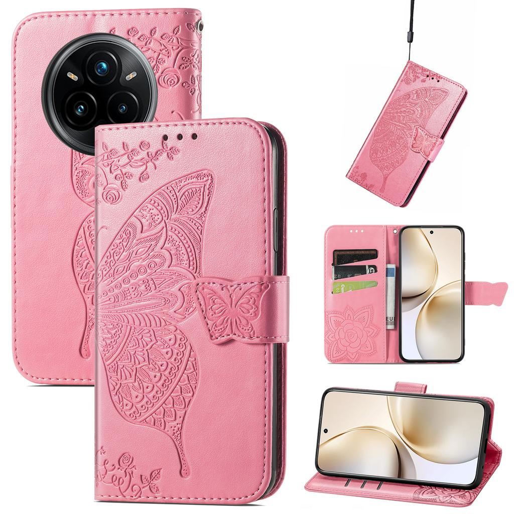 Для Realme 14 Pro 5G Чехол с ремешком Узор бабочки Кожаный кошелек Чехол для телефона