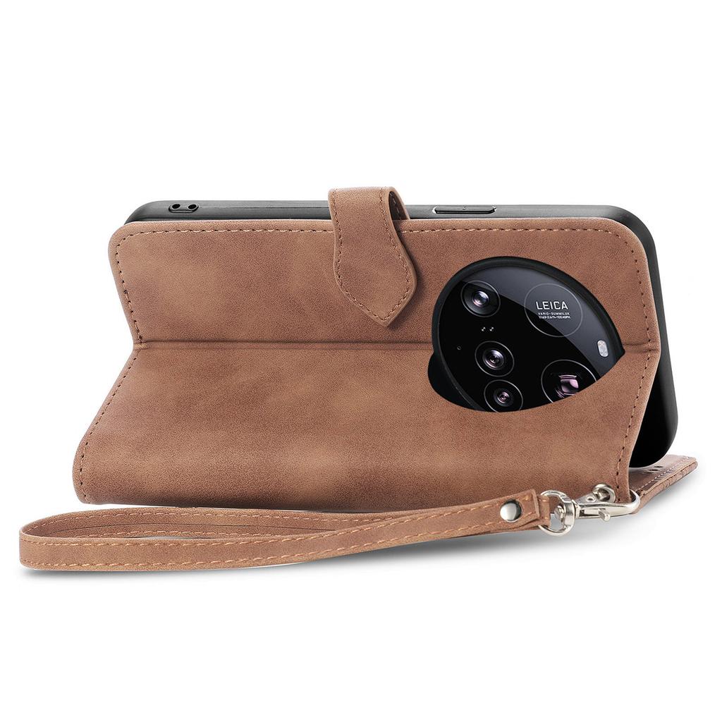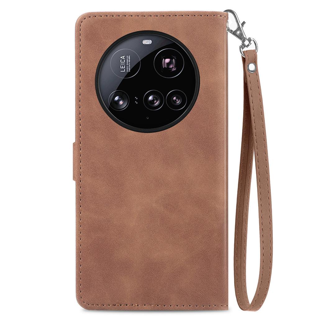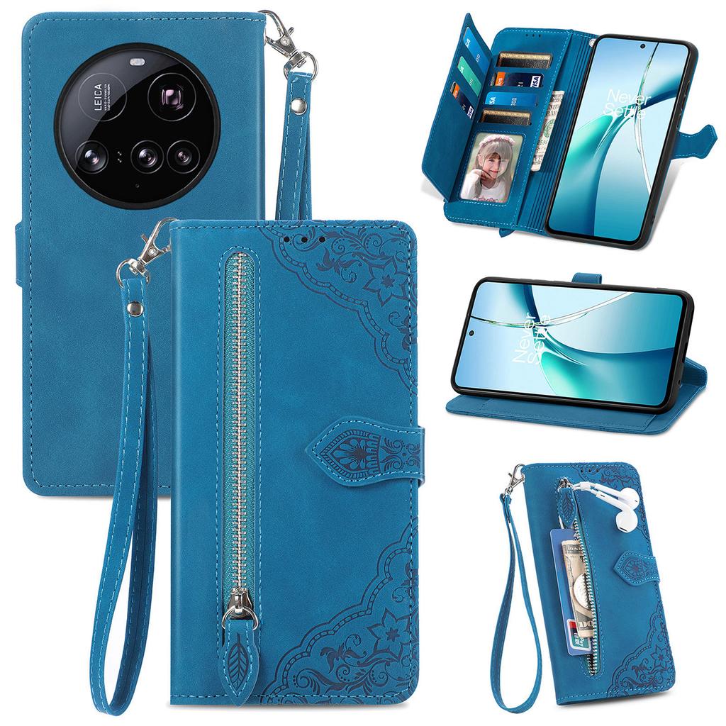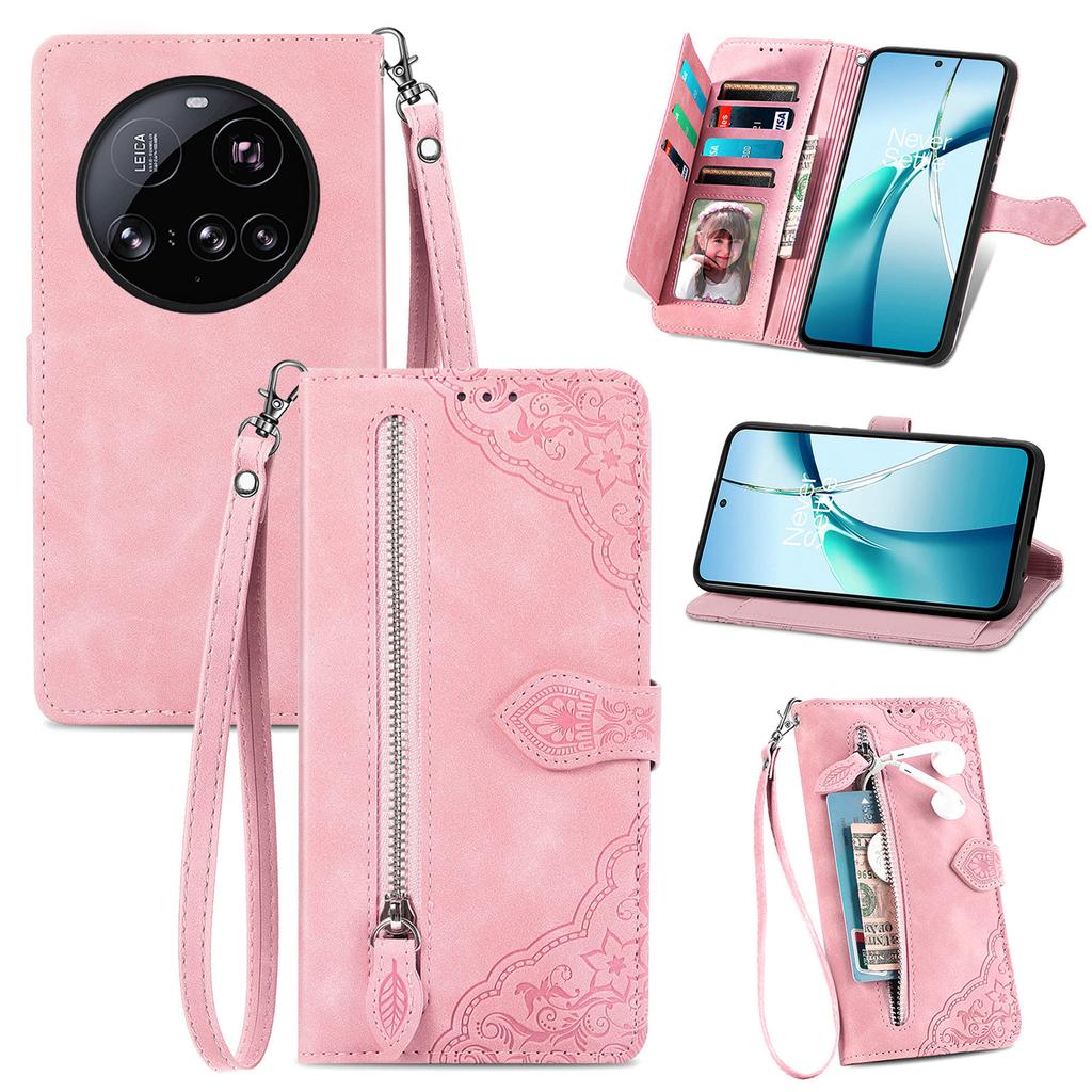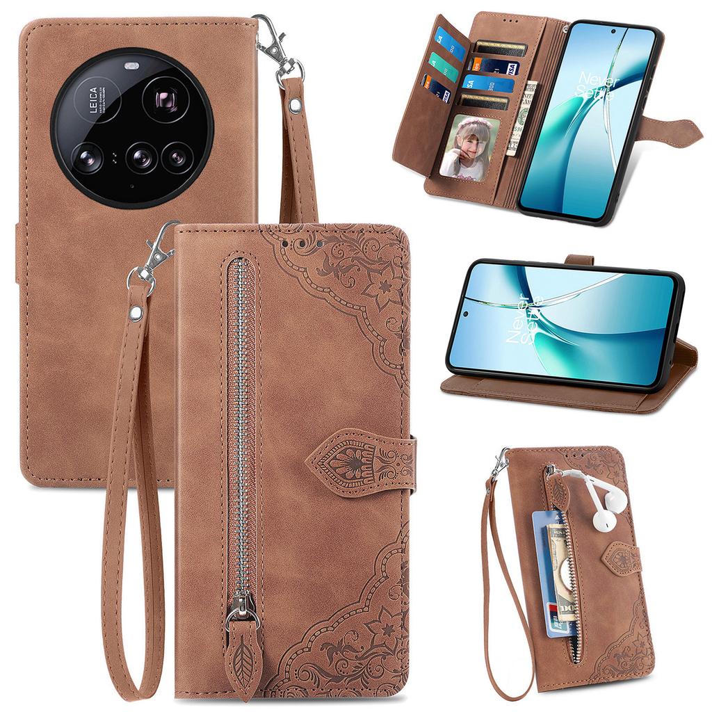 For Xiaomi 15 Ultra Zipper Wallet Case with Strap Flower Imprint PU Leather Phone Cover