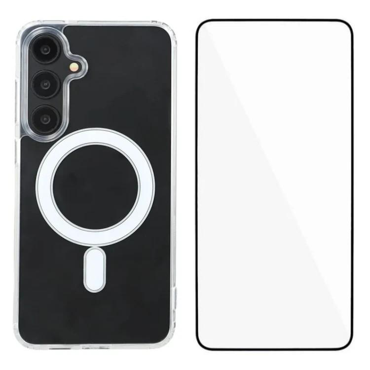 WANLONFENG LM Series For Samsung Galaxy S25+ Magnetic Case Crystal Clear TPU+Acrylic Phone Cover with Screen Film (Big Lens Hole) — купить товар онлайн с бесплатной доставкой до всему миру!