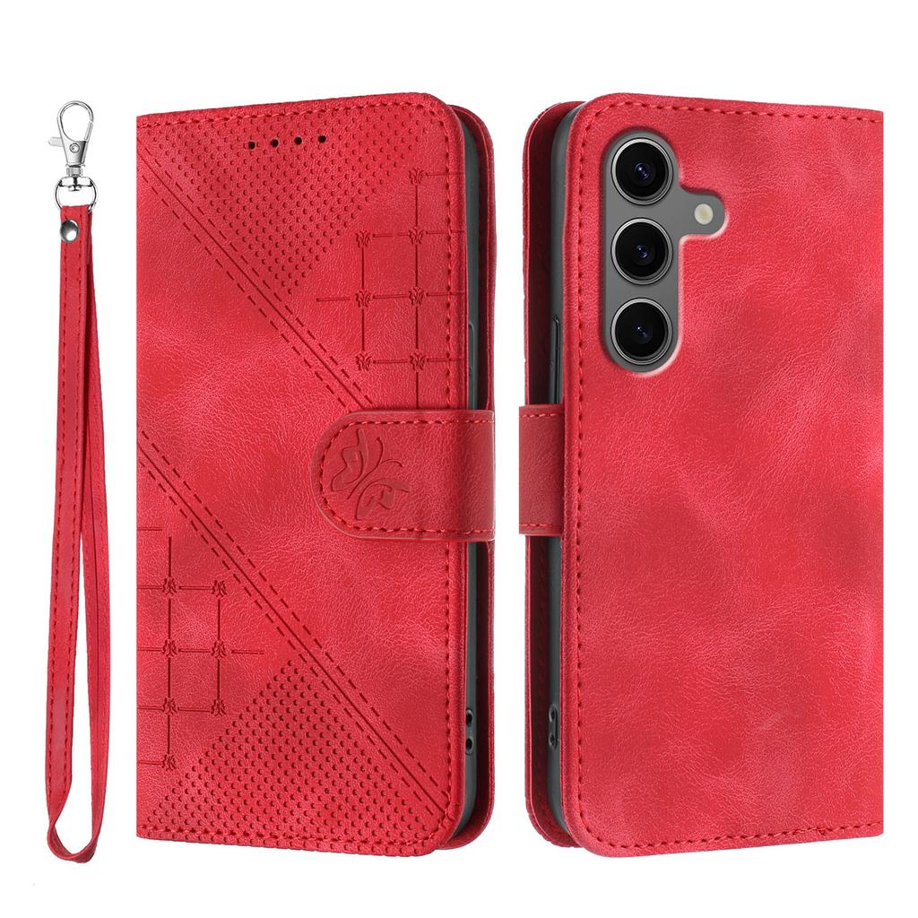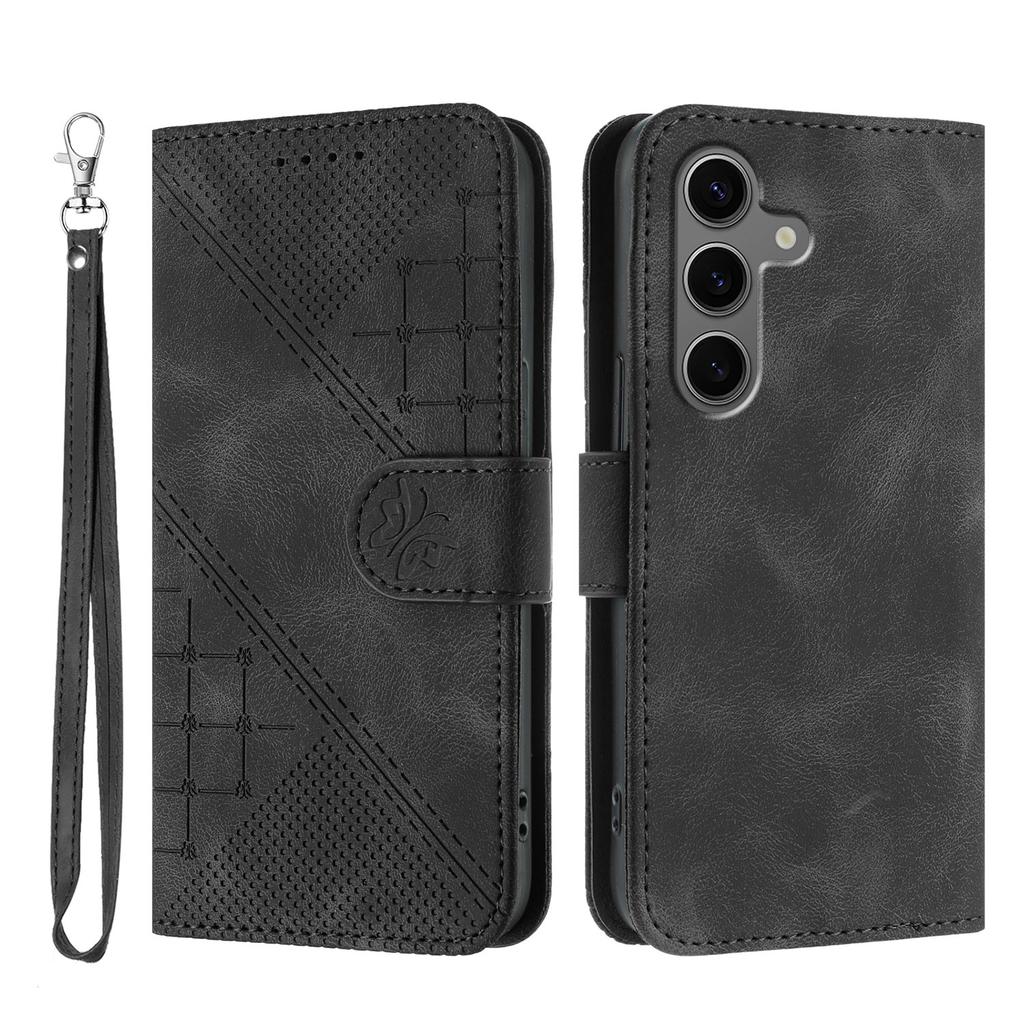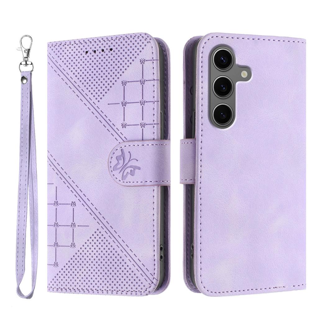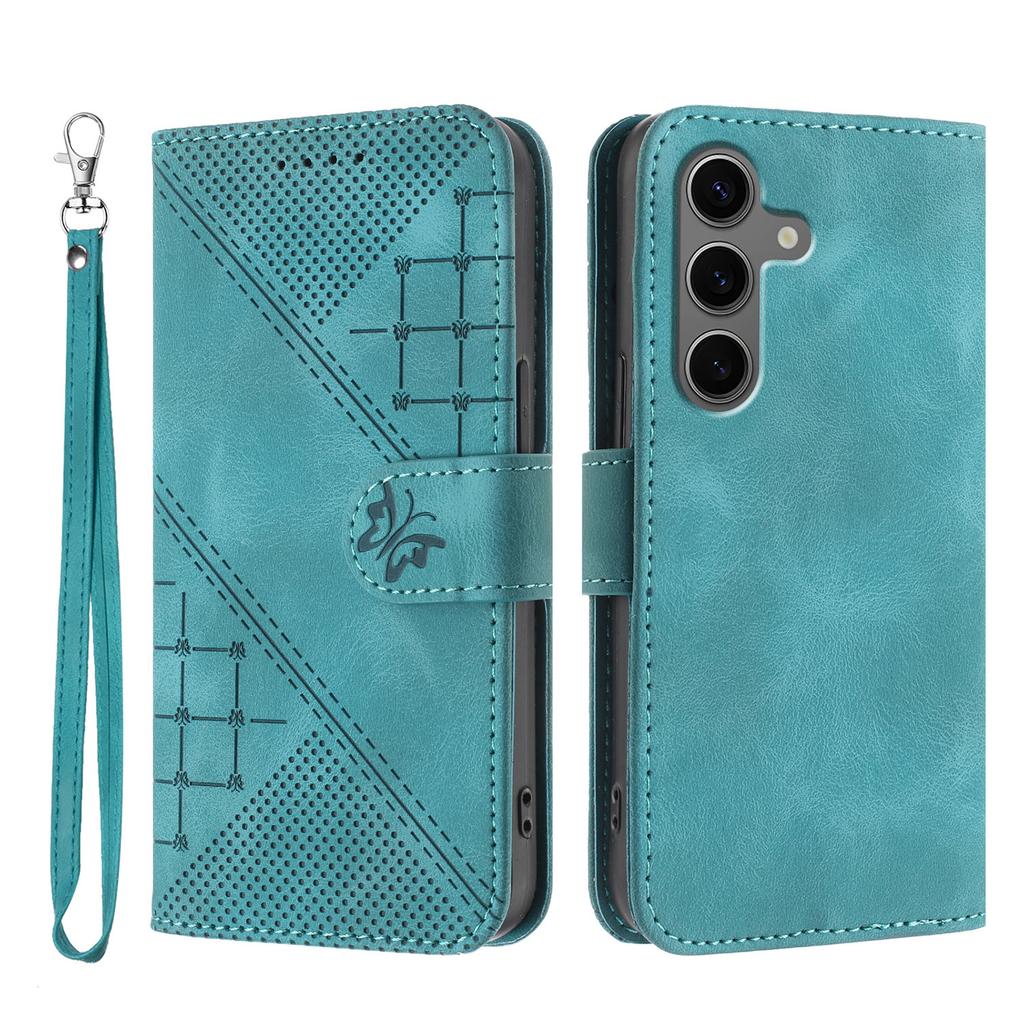 For Samsung Galaxy S24+/Galaxy S25+ Leather Wallet Case Butterfly Flower Imprinted Phone Cover with Strap
