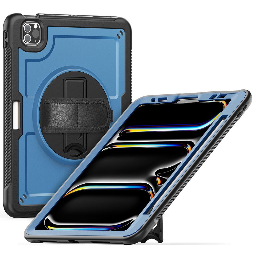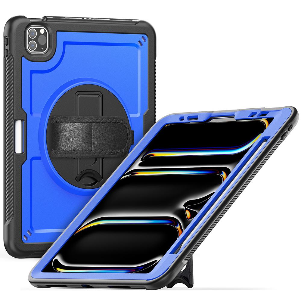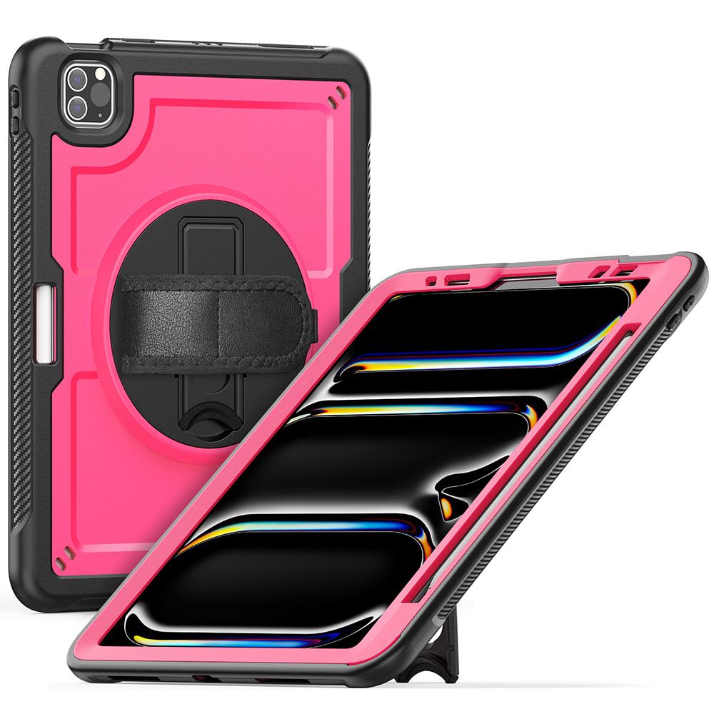 For iPad Pro 11 (2024) M4 A2836 Case Kickstand PC TPE Tablet Cover with Hand Strap