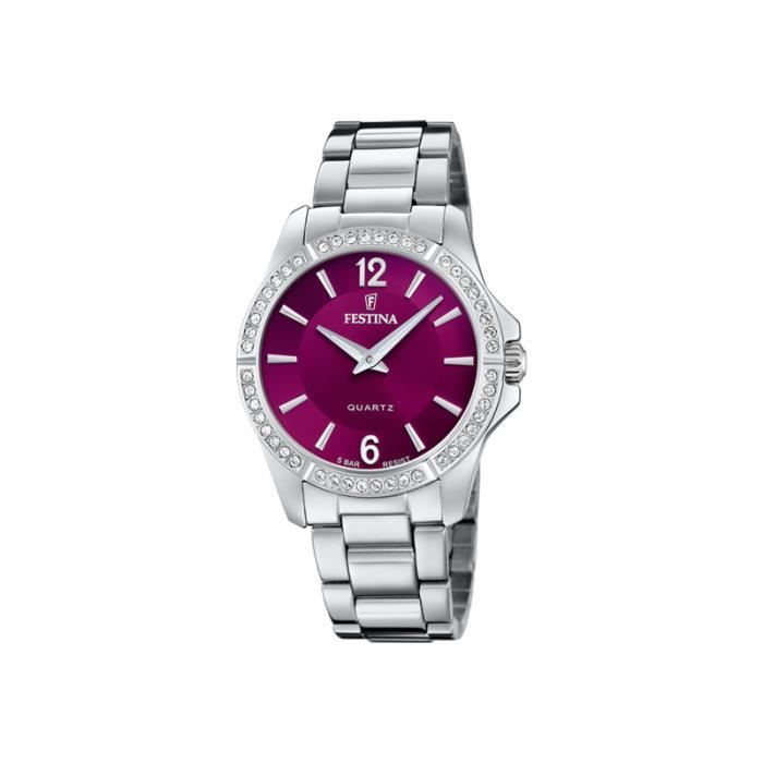 Montre Femme - FESTINA - F20593/2 - Acier - Étanche 10 Atm - Cadran Bordeaux avec Strass — купить товар онлайн с бесплатной доставкой до всему миру!