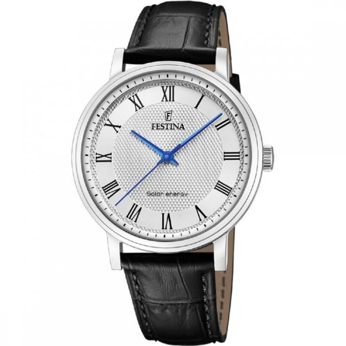 Montre - FESTINA - F20660/3 - Acier 41mm - Cuir Noir - Énergie Solaire - Étanchéité 50m