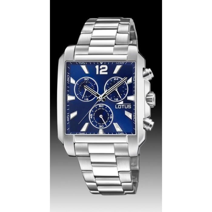 Montre - Lotus - 18850/2 - Rectangulaire 38x37.5mm - Cadran bleu - Étanche 50m — купить товар онлайн с бесплатной доставкой до всему миру!