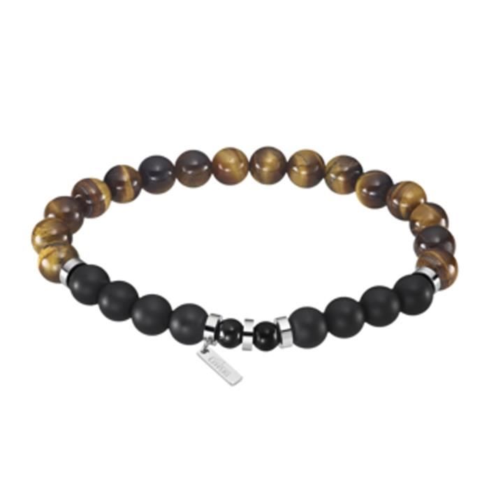 Bracelet - LOTUS - Lotus Style - Perles marrons et noires - Élastique - 19 cm